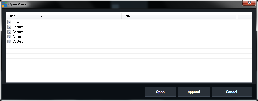 Open Preset opens up a file open dialog where you can select an existing Preset.
