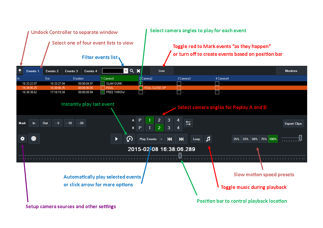 vMix Replay includes a centralized Instant Replay Controller that can either be docked to the main vMix window or opened separately.