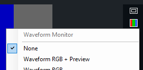 The professional waveform monitor can be turned on within the Preview window and the Input settings window by clicking the colour bar icon as shown below.