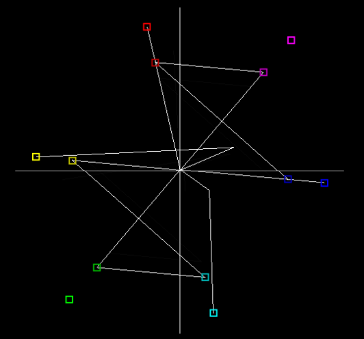 Colour squares indicators representing 75% and 100% Red, Magenta, Blue, Cyan, Green and Yellow are displayed at the relevant points