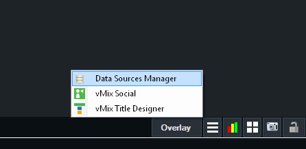 1. Open up the Data Sources Manager from the menu in the bottom right hand corner of the main vMix window.