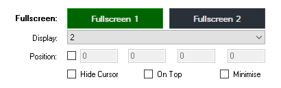 Two output screens are supported in vMix 4K and can be configured here by clicking the Fullscreen 1 or Fullscreen 2 buttons.