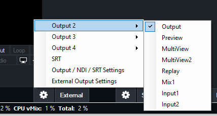 The Cog Button contains a drop down menu for selecting a source for any additional outputs in real time