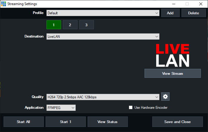 LiveLAN is intended for use on the local network only. To calculate the amount of bandwidth needed, multiply the number of viewers by the bitrate specified in the Streaming Quality,