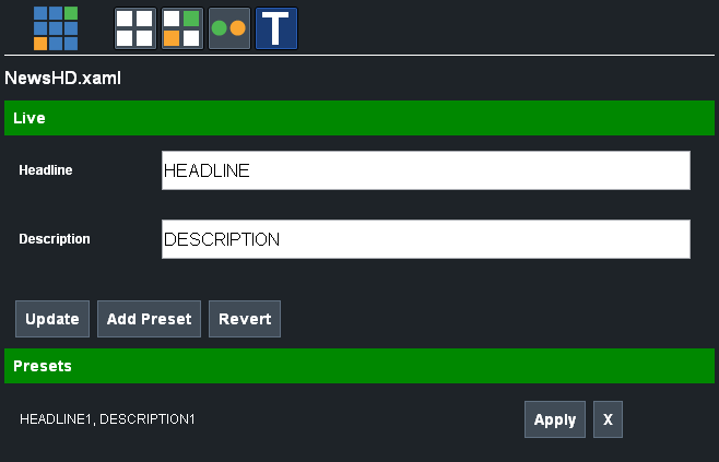 The title editor allows you to edit the text of any Title or XAML input in vMix from any WiFi web enabled device.