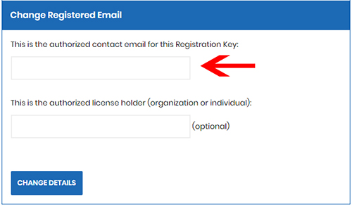 3. Scroll down to the bottom where it says "Change Registered Email". Input the new email address and click Change Details. This is the only information that the end user will see.