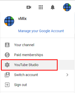 1. Log into your YouTube account. Go to the top right, click on your icon and then click YouTube Studio.
