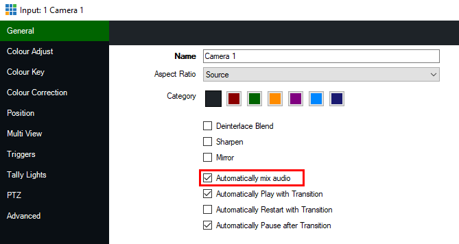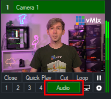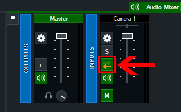 When this setting is enabled, it will automatically turn the audio on or off depending on whether it is in the live output. However in some cases you may wish for this audio to stay on at all times. Such as an embedded microphone in a camera input. In which case you will just need to disable this Green and Orange Arrow button so it is no longer green. Then just make sure your audio button is enabled and turned on. This is by either turning on the Audio button on the input or alternatively in the Audio Mixer.