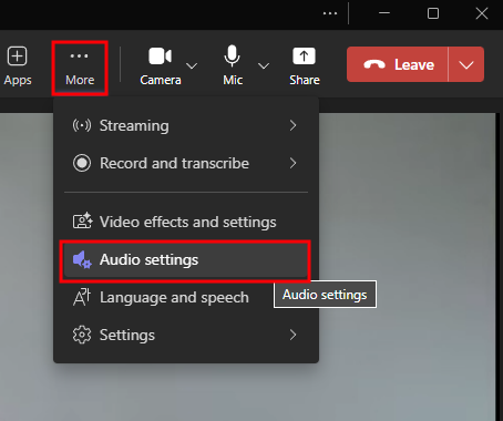 Start your Teams Call, then go to the More Settings button (3 dotted button) and select Audio Settings.