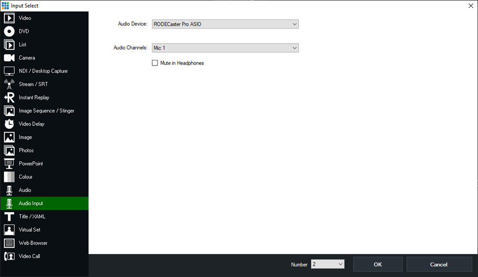 - Add your RODECaster Pro II input channels (microphones, sound effects, etc) into vMix individually