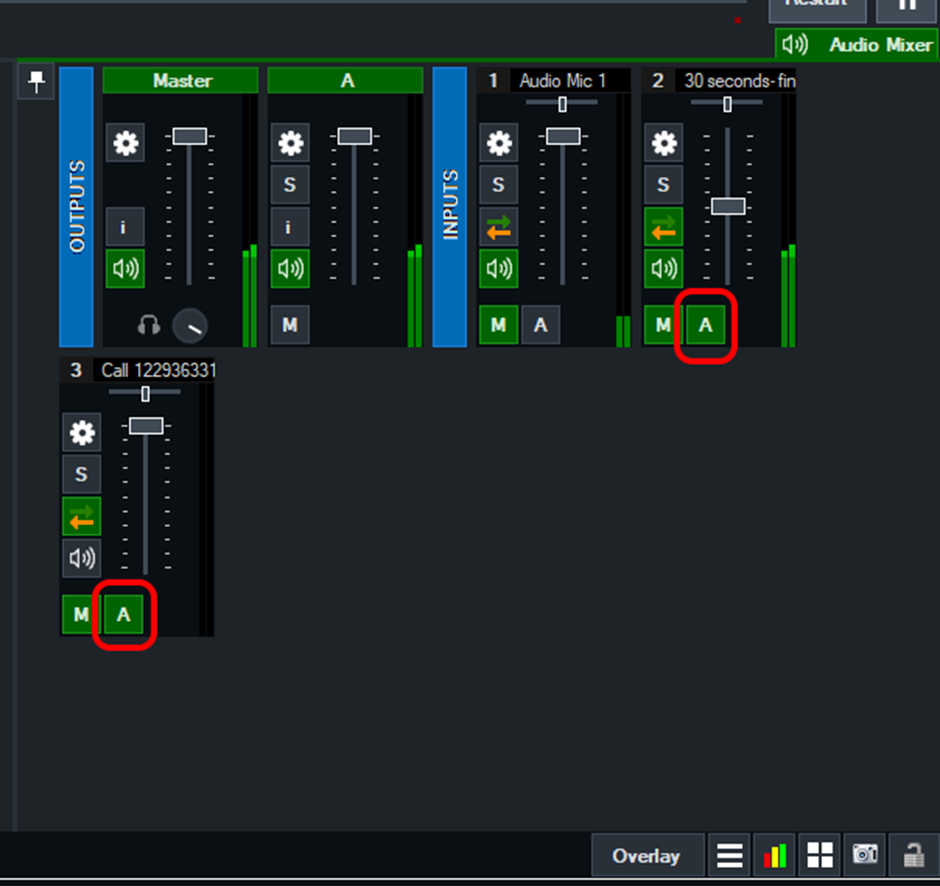 Now go to your Audio Mixer Inputs in vMix, and for those inputs that you would like audio to flow back to the RODECaster Pro, add them to Bus A (or whatever bus you picked earlier).