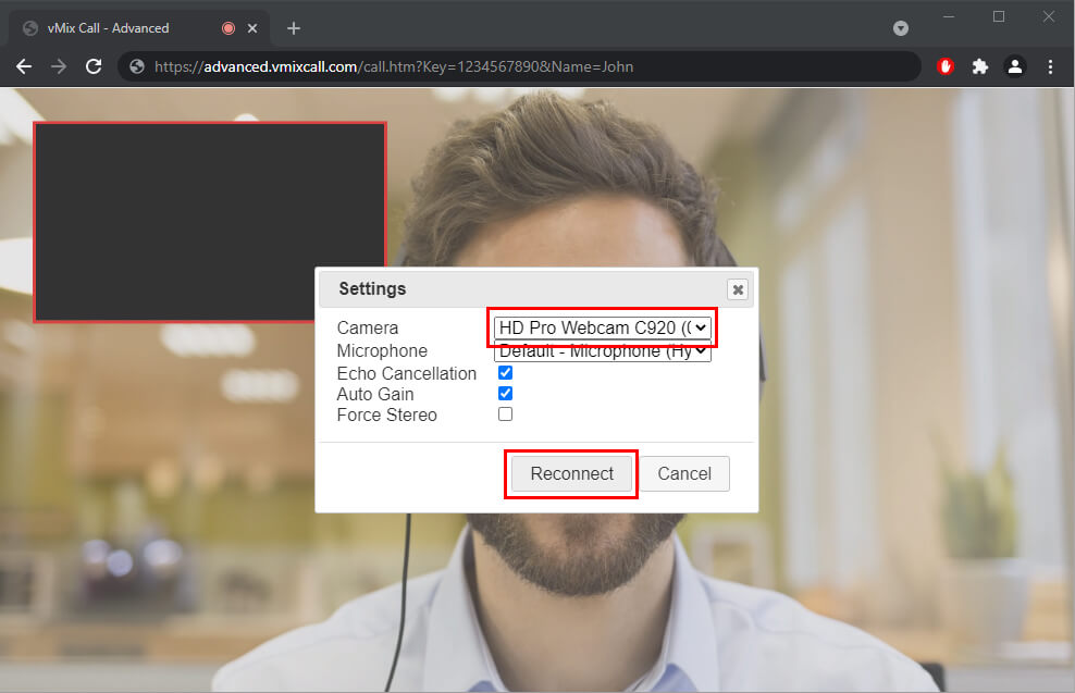 If a vMix Call guest using either PC or Mac need to change the default camera being used in the vMix Call, this can be done via the web browser settings (vmixcall.com). Or vMix Call menu settings (advanced.vmixcall.com).
