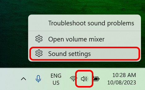 1. Right-click the speaker icon in the Windows System Tray and click on ‘Sound Settings’.