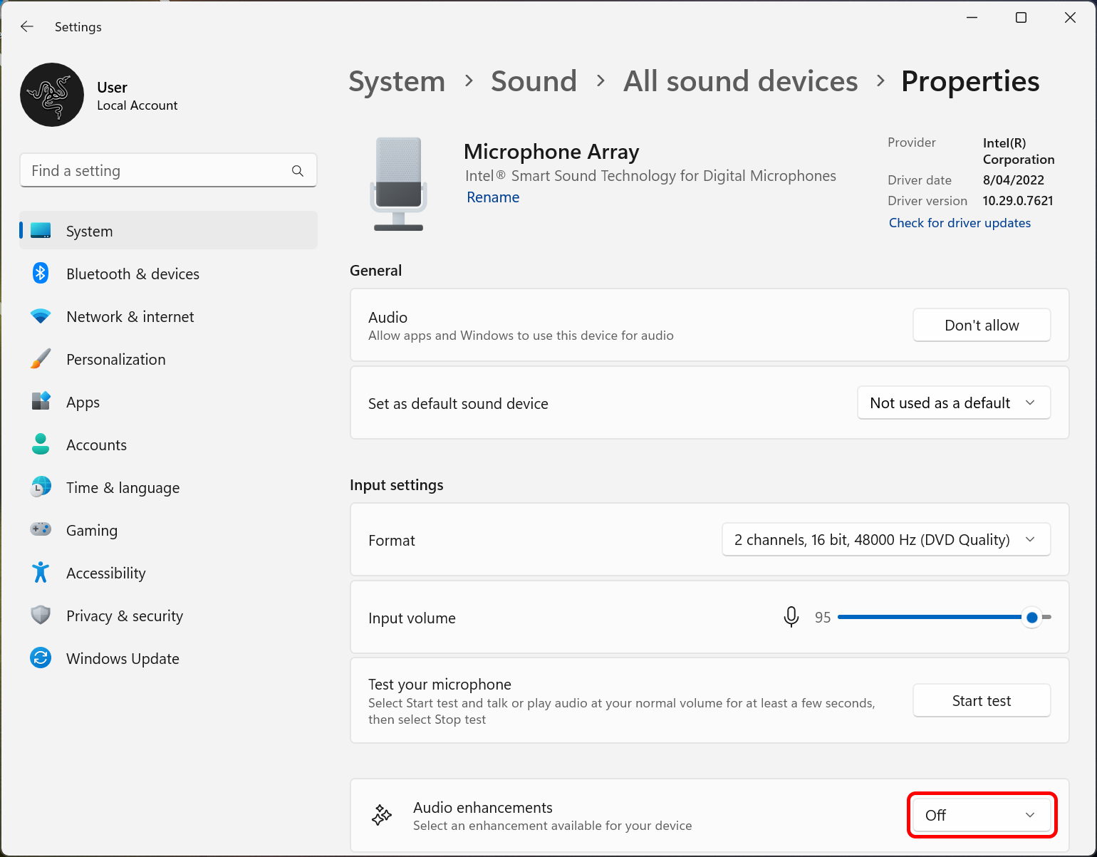 On some Windows 11 computers, most-often laptops, there are automatic audio enhancements and filters that can negatively affect audio quality. Symptoms can include audio clipping of voices, dropouts, a tinny or echoing soundstage, voices coming through but not instruments, among others.