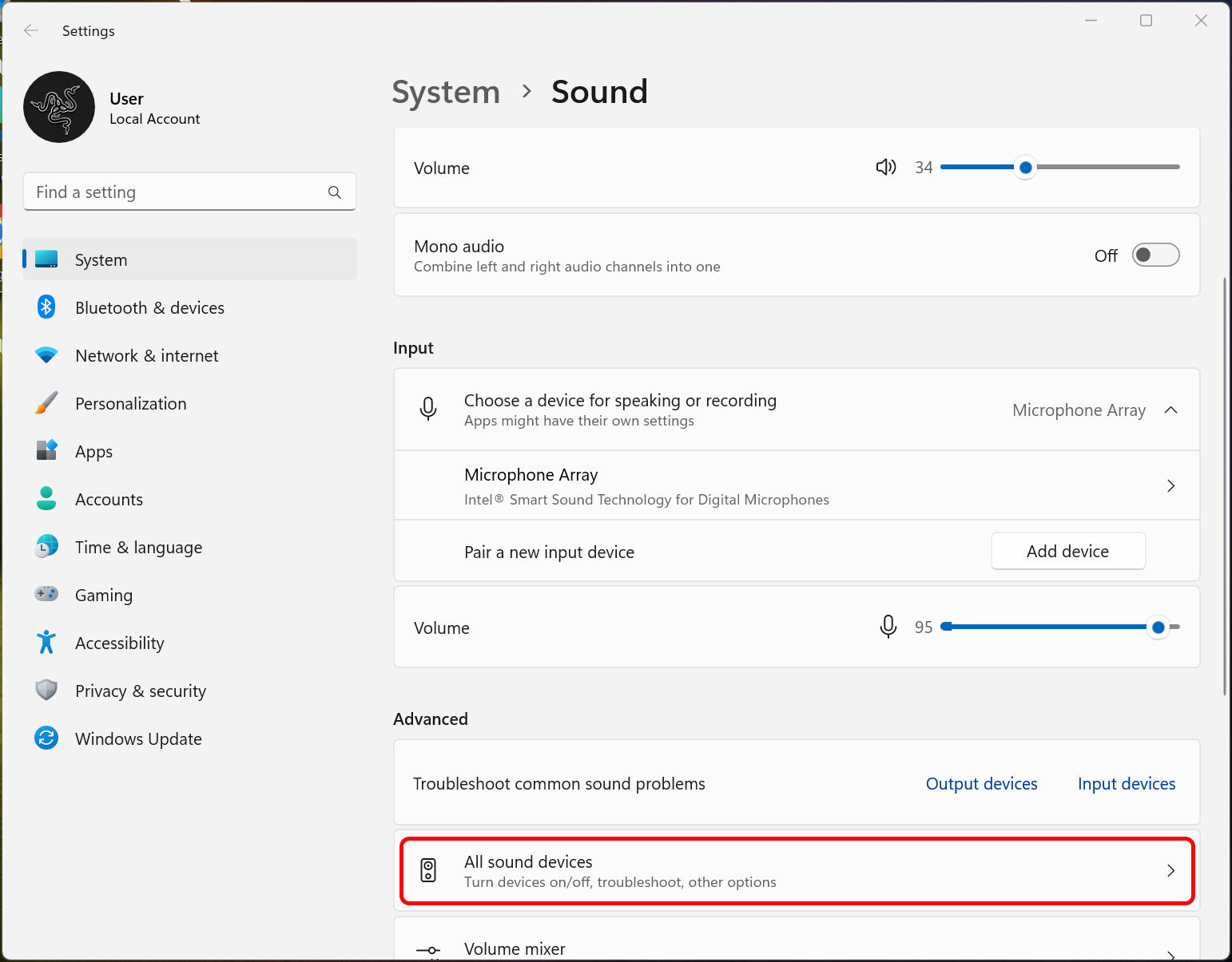 2. Under the ‘Advanced’ section, click on the ‘All Sound Devices’ option.