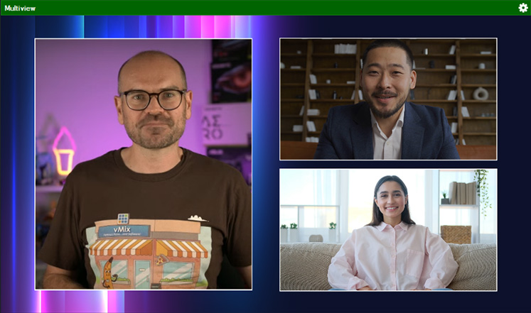 We can add multiple Zoom Inputs into vMix for as many participants as we need. Do note however, that Zoom limits the connection to 30Mbps and so as more participants are added, the resolution of participants may reduce dynamically. With our participants added, we can then switch between them in our production just like camera inputs or add them into a Layer Input template, such as this one.