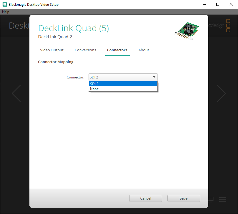 3. Under the tab named Connector the Connector should show SDI 1 & SDI 2 by default. Change this to SDI 1.