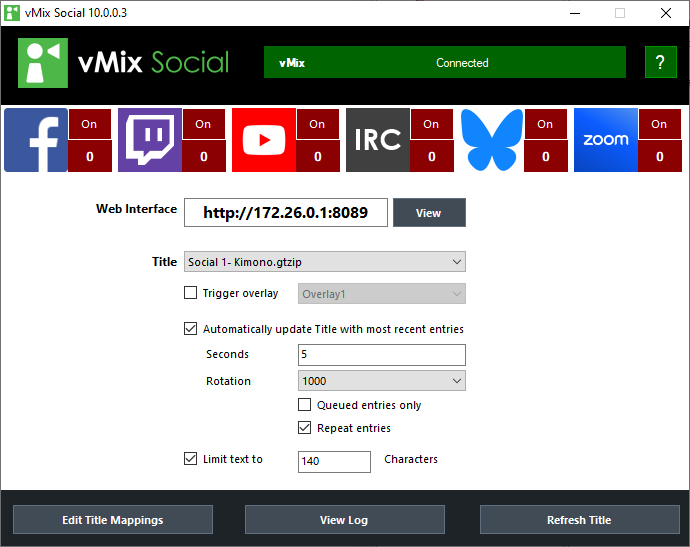 If vMix Social does not show vMix Connected after 30 seconds, see Troubleshooting